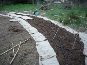 A les publicacions sobre Permacultura, havíem llegit més d’una vegada informació sobre un mètode alternatiu de conrear patates. Ens semblava realment interessant ja que no requeria remenar terra ni una sola vegada: ni per sembrar, ni per calçar, ni per collir. I no remoure la terra és doblement bo, perquè per una banda s’estalvia molta feina (i mals d’esquena) i per altra banda no es destorba l’estructura del sòl ni els seus habitants.