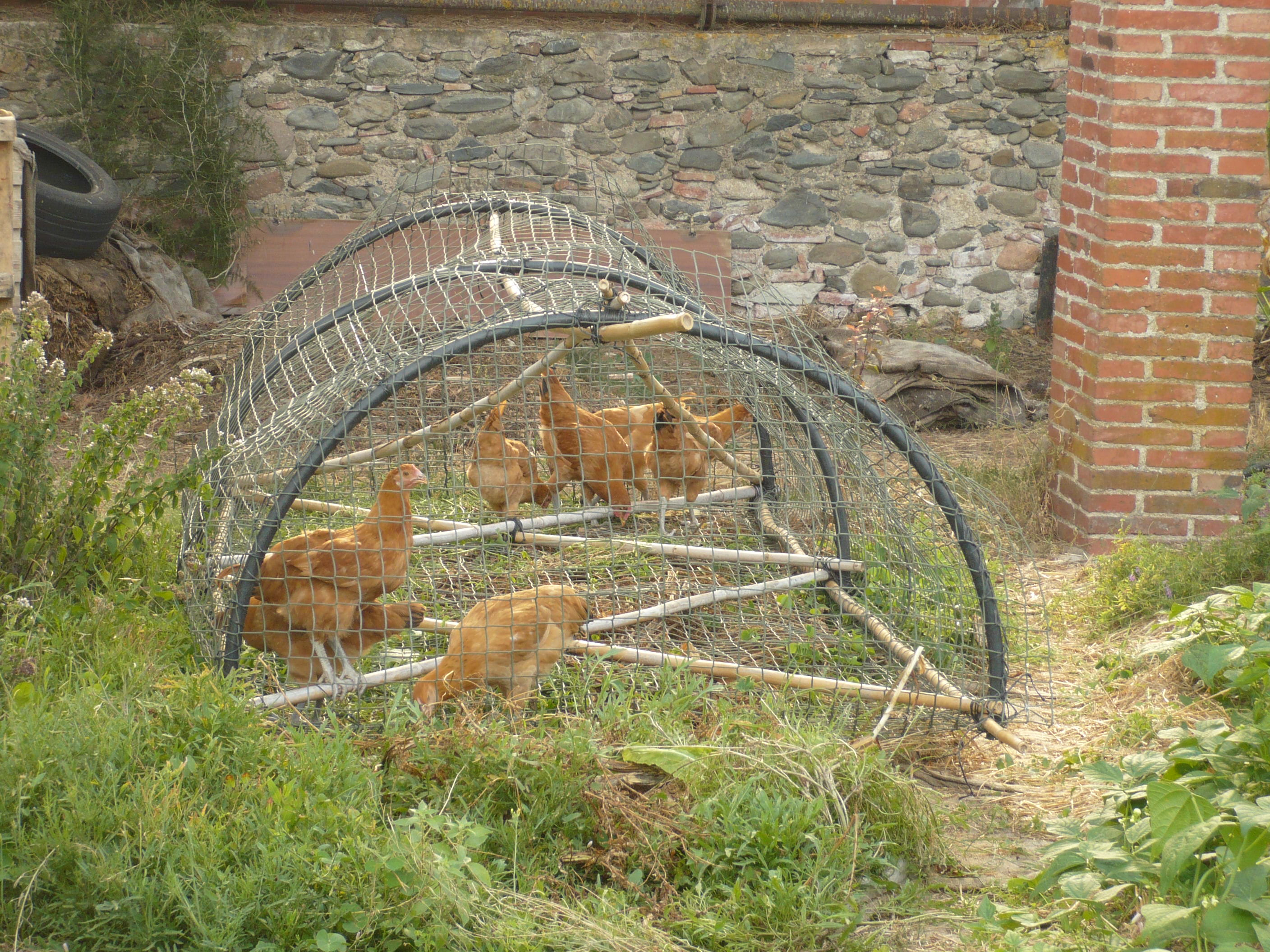 Es tracta doncs d’una petita estructura tancada que es posa sobre un bancal quan està lliure, en el temps entre cultius, perquè elles puguin anar picant, rascant i cagant tan com vulguin. A tenir en compte: