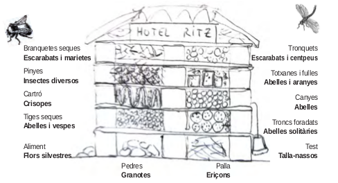 Es tracta d’una construcció de molts pisos i habitacions, plenes de materials i formes que resulten atractius a cada bestiola…