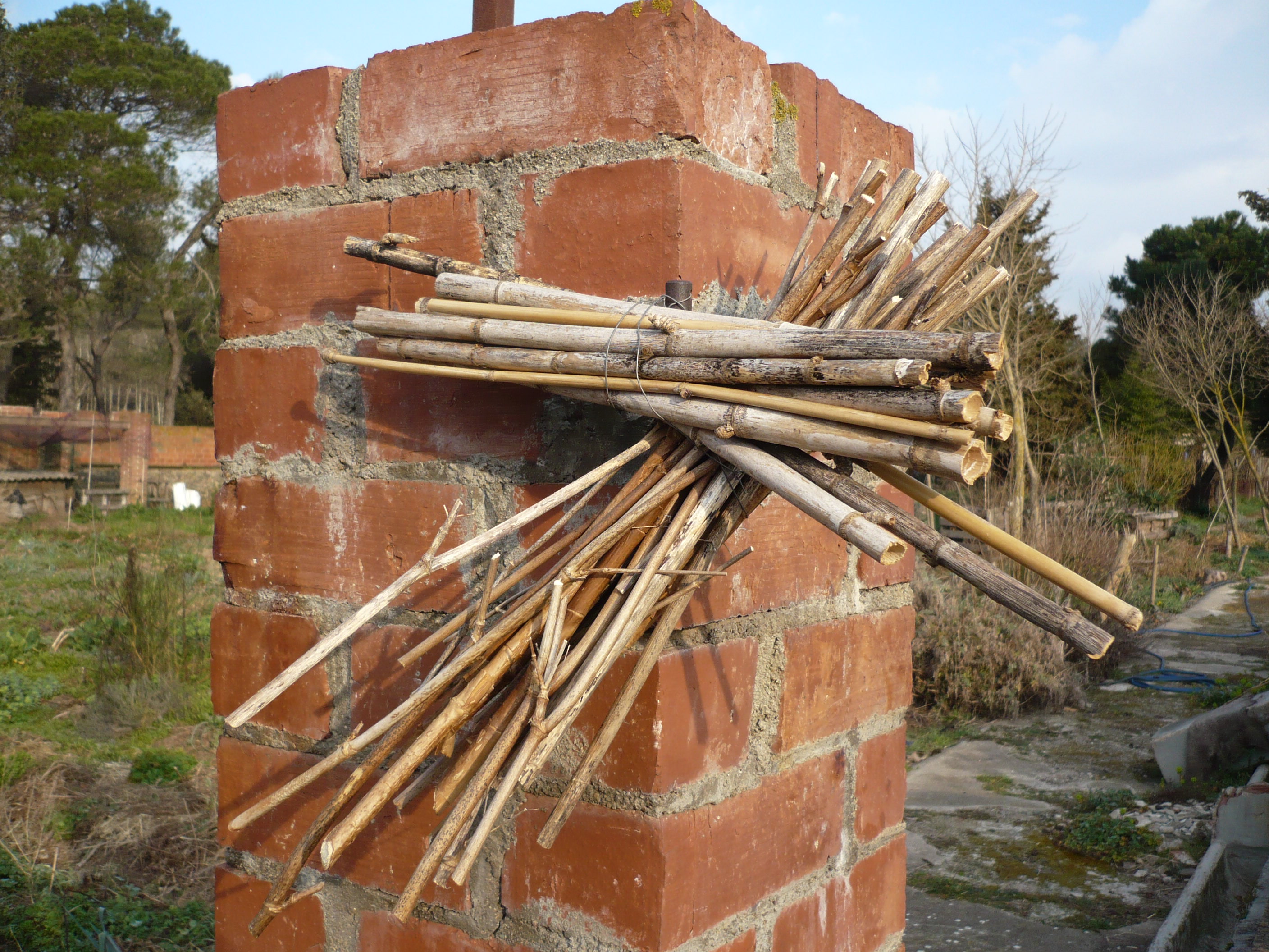 El niu de feixos: Es tracta d’un o més feixos de canyetes o de tiges (bambú, canya, saüc, esbarzer, roser, etc.). Són el niu perfecte de abelles solitàries i algunes vespes.