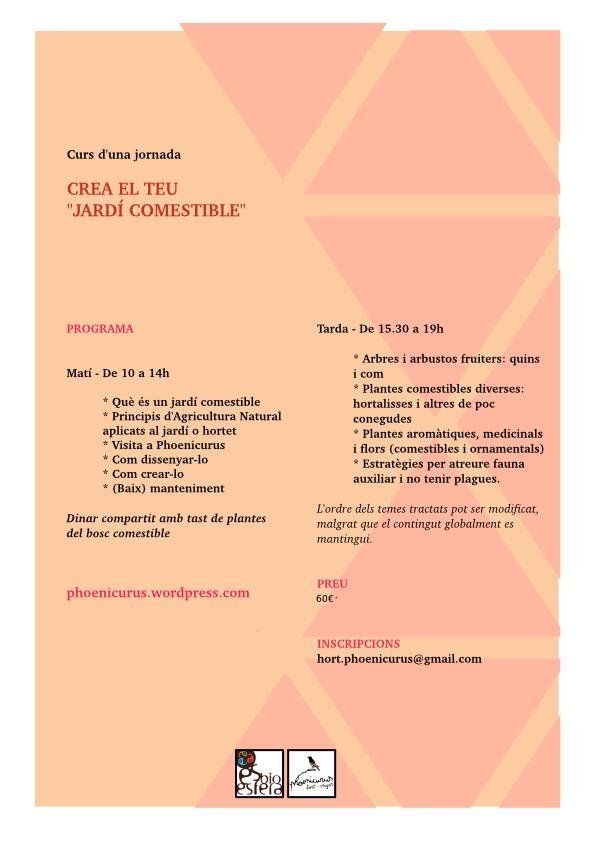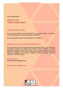 Horari: de 10 a 14h i de 15.30 a 18h – Organitzen: Esbioesfera i Hort-Verger Phoenicurus – Aportació: 90€ – INSCRIPCIONS emplenant el formulari d’inscripció o escrivint-nos a phoenicurus.permacultura@gmail.com