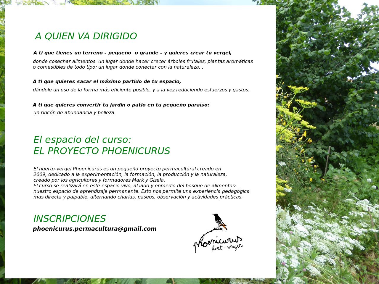 INSCRIPCIONES rellenando el formulario de inscripción o escribiendo a phoenicurus.permacultura@gmail.com