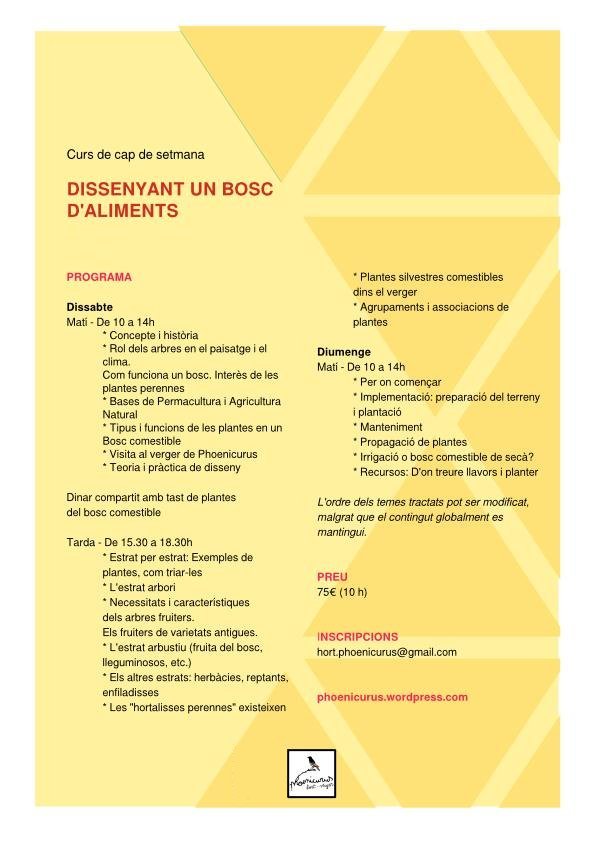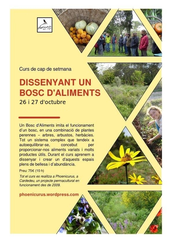 Durant el curs aprenem les tècniques i coneixements claus per a poder dissenyar i crear un espai ple de bellesa i d’abundància. A més ho podem veure, palpar, i experimentar en el context d’un dels pocs ‘boscos comestibles’ que hi ha a Catalunya i que compta amb més de 250 espècies diferents.