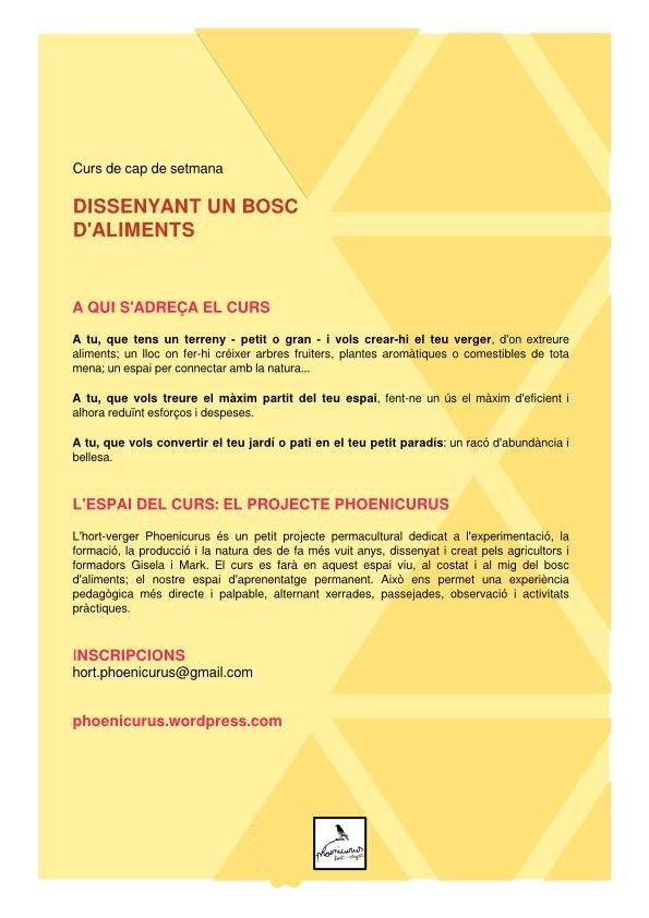 Organitza: Phoenicurus – Cap de setmana – Preu: 75€ – INSCRIPCIONS emplenant el formulari d’inscripció o escrivint-nos a phoenicurus.permacultura@gmail.com