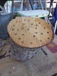 Niu de fusta foradada: Altres abelles solitàries i vespes, construeixen els seus nius a la fusta. Certes espècies són capaces de foradar-la elles mateixes, com la xylocopa, però d’altres aprofiten els forats que, per exemple, un escarabat ha excavat prèviament. Aquest és l’hotel preferit dels que saben aprofitar els forats. Per construir-lo necessitem una llesca gruixuda de fusta amb forats de mides entre 2 i 10 mm de diàmetre. Podem demanar ajuda per foradar. Cada forat serà ocupat per una espècie diferent segons la mida.